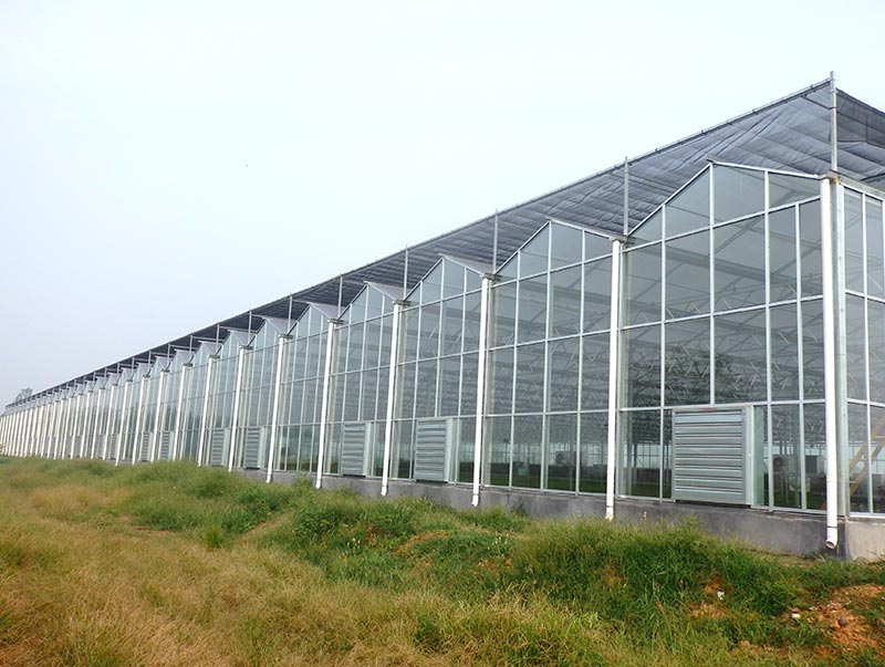 玻璃溫室通風(fēng)目的主要是為了排除溫室的余熱及溫室內(nèi)的水分, 調(diào)整溫室內(nèi)空氣成分, 排除有害氣體,使溫室內(nèi)的環(huán)境溫度、濕度和空氣等條件適宜植物生長的要求。